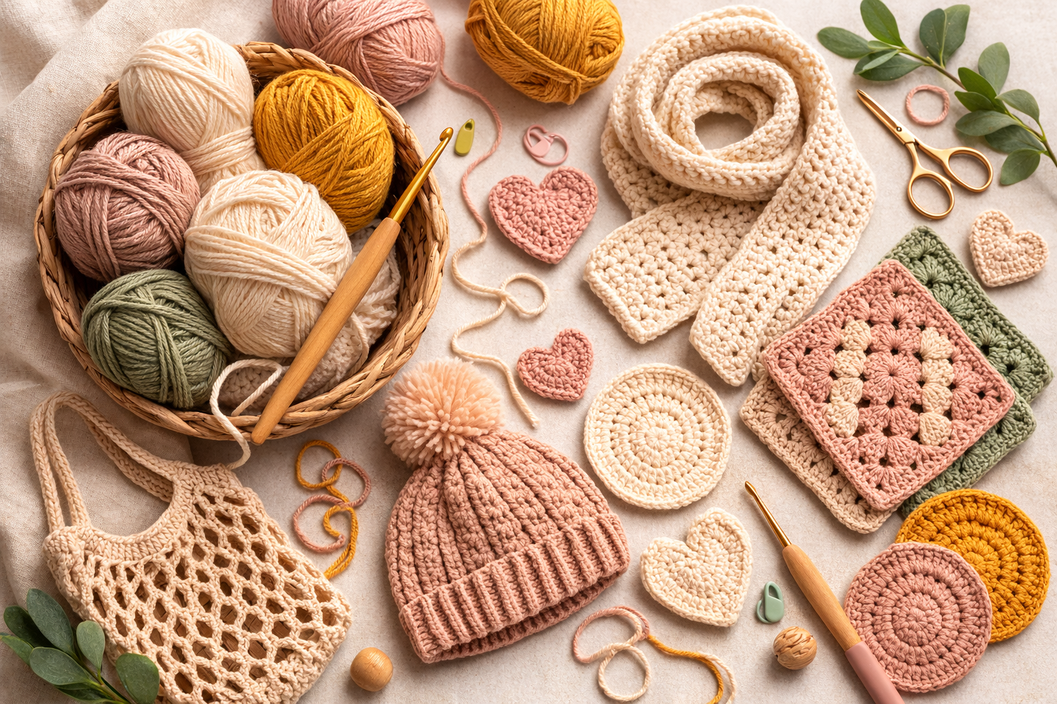 A scarf is one of the most popular beginner crochet projects. It usually involves repeating the same stitch across many rows, which makes it perfect for learning consistency and tension.